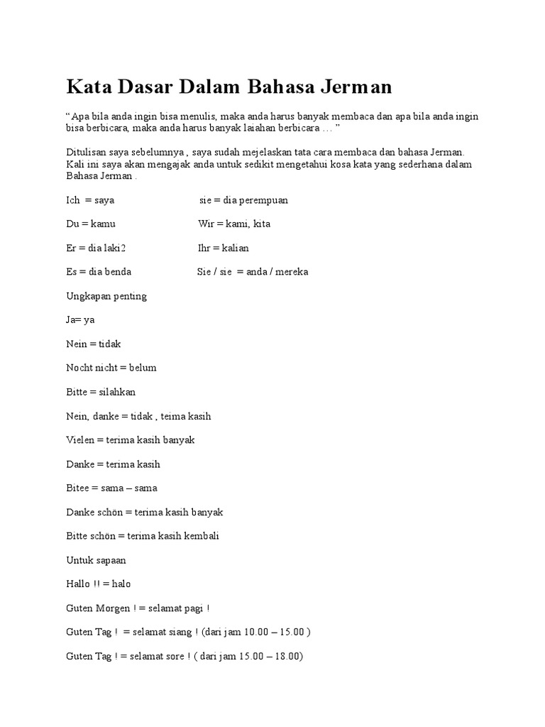 Kata Dasar Dalam Bahasa Jerman Pdf
